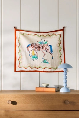 Colorful animal prints with complementary borders adorn this cotton canvas tapestry.