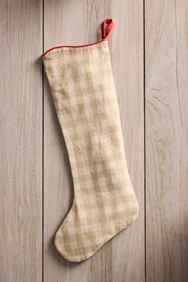Add a cheerful pop of pattern to your holiday mantel with this terrain exclusive gingham stocking.