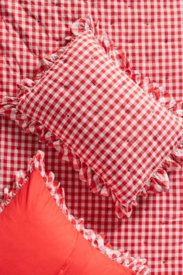 This bedding set features *super-cute* ruffled edges and a gingham pattern, adding cottage core sweetness to your bedroom.