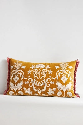 Adorned with embroidered florals and subtle fringe, this pillow lends understated elegance to any sofascape.