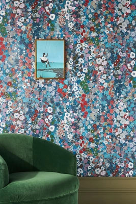 Featuring painted blooms in winter-inspired hues, this floral wallpaper, created for House of Hackney by artist Kerry Simmons, makes a stunning and dramatic backdrop for any living space.