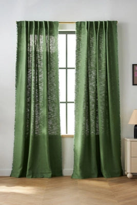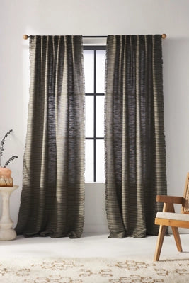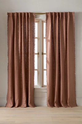 Crafted from a luxurious heavyweight blend of linen and viscose, this curtain features an open weave, raw-edge trim, and a silky, beautiful drape that delivers a subtle sheen with textural richness and refinement to your décor.