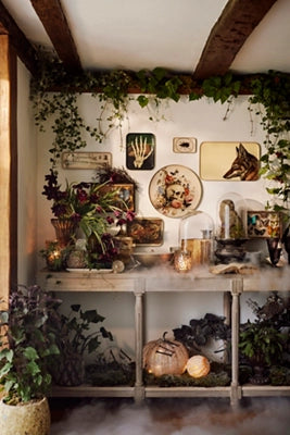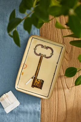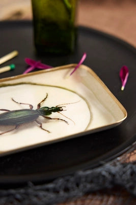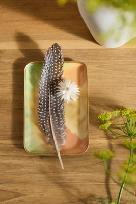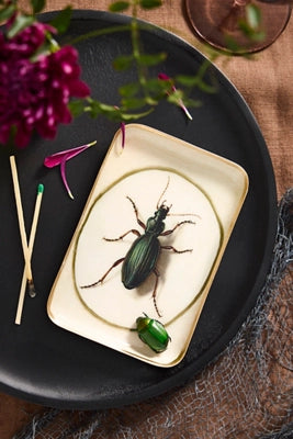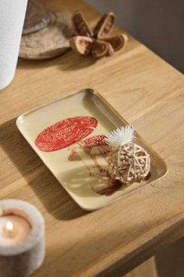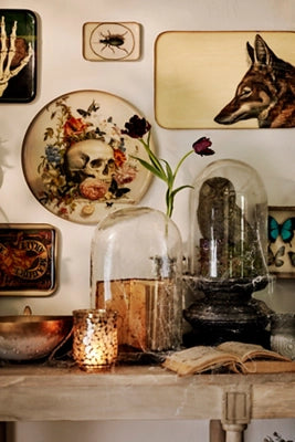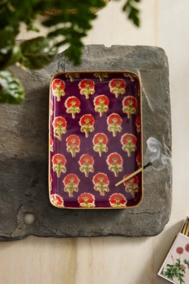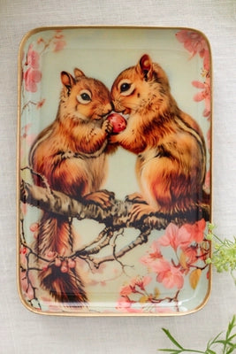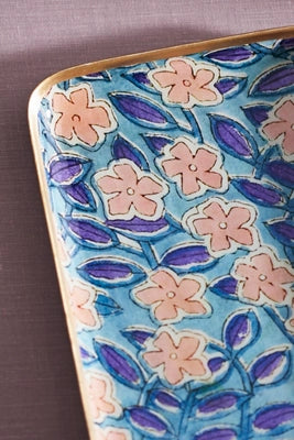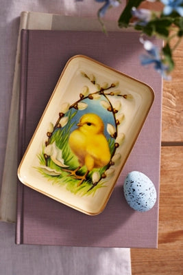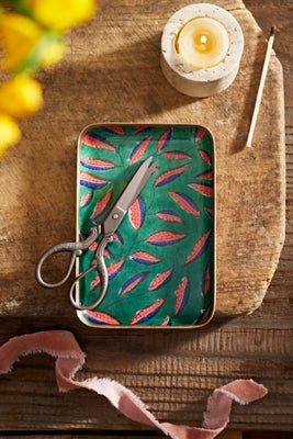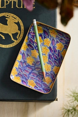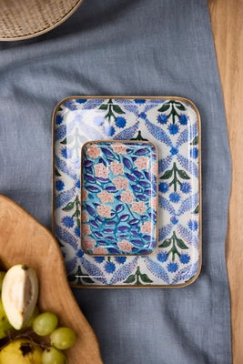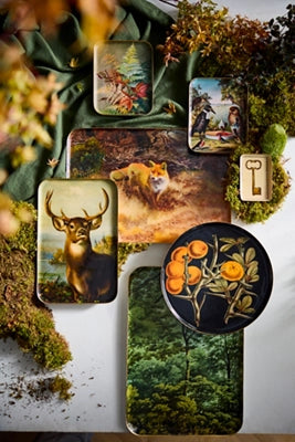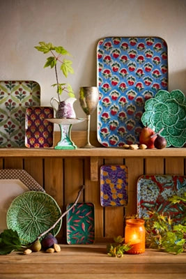 Handmade especially for terrain, this decorative enameled iron tray is topped off with a richly detailed illustration.