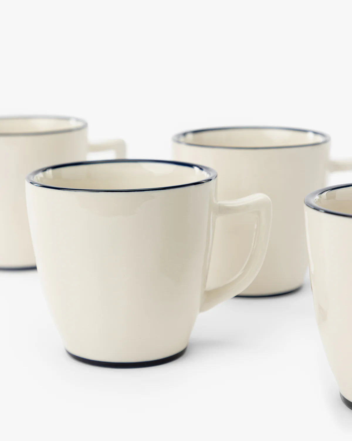 With their creamy finish and delicate navy rim, our Pritchard Mugs offer a warm, timeless feel for your morning coffee or evening tea. The thoughtfully crafted shape sits beautifully in hand, making every sip a simple pleasure.