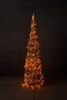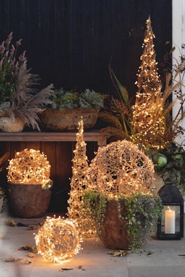Add a warm glow to indoor and outdoor spaces with this rustic cone of rattan vine, each one illuminated by an interwoven strand of warm white LED lights. This terrain exclusive design features our Soft Twinkle function for the perfect festive atmosphere.