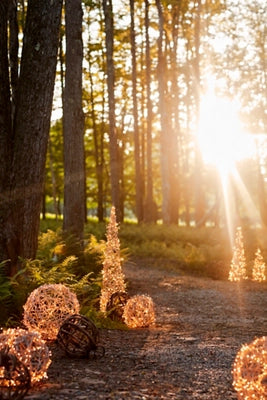 Add a warm glow to indoor and outdoor spaces with this rustic sphere of rattan vine, each one illuminated by an interwoven strand of warm white LED lights. This terrain exclusive design features our Soft Twinkle function for the perfect festive atmosphere.