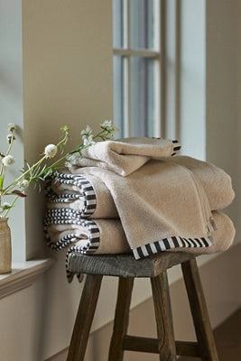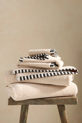 The Sloane Towel Collection is crafted from luxurious Zero-Twist Cotton, ensuring an exceptional combination of thickness, absorbency, and unparalleled softness. Every piece within this distinguished collection is adorned with a woven striped hem, adding a touch of sophistication and charm.