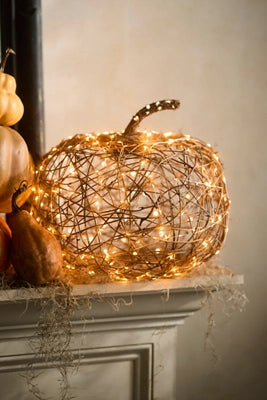 Brighten your autumn home with this terrain exclusive pumpkin, made from natural rattan and illuminated by warm white LEDs. The LED bulbs feature our Soft Twinkle functionality (25% flashing bulbs at 40 flashes per minute).